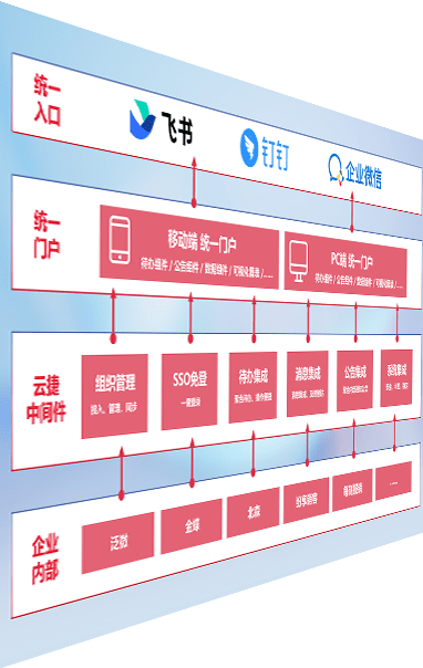 对协作平台提供支持服务,,支持企业应用与协作平台对接,,包含组织同步、、消息集成、、、、待办集成等。。。支持目前主流的协作平台:钉钉、、、企微和飞书。。